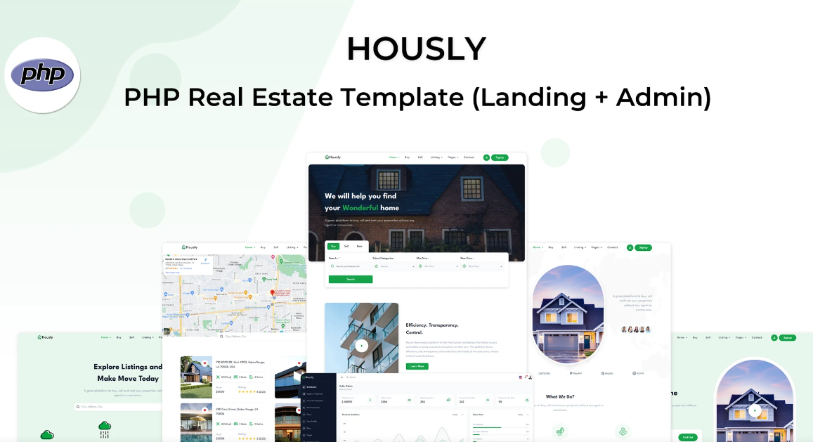 Hously es una plantilla de bienes raíces PHP moderna y responsiva, diseñada para maximizar la conversión y la personalización. Basada en PHP v8.3.13 y Tailwind CSS v3.4.15, esta plantilla ofrece un diseño limpio y adaptado a todo tipo de dispositivos y navegadores. Ideal para agencias y agentes inmobiliarios, Hously incluye soporte para temas oscuro y claro, así como versiones LTR y RTL, brindando una experiencia versátil y completa. Es la solución perfecta para empresas inmobiliarias que buscan un diseño profesional y funcional.