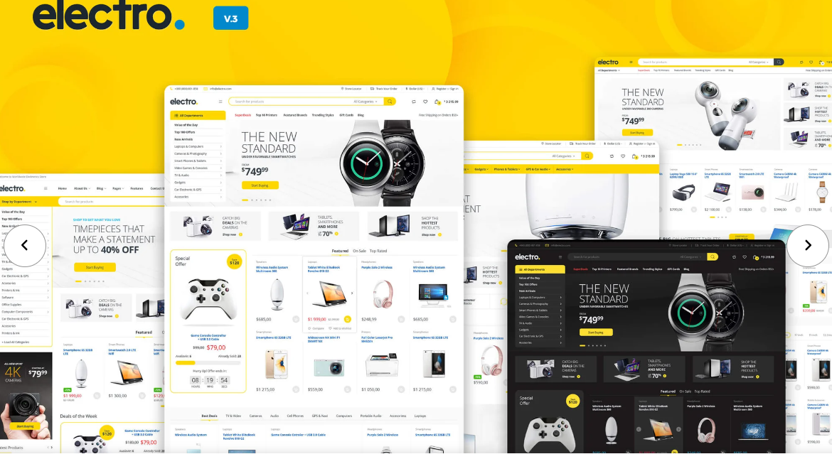 Electro es un tema de WordPress potente y flexible diseñado específicamente para maximizar el potencial de WooCommerce en tu tienda en línea. Perfecto para tiendas de electrónica, marketplaces de múltiples proveedores y sitios web afiliados, Electro incorpora características avanzadas inspiradas en los sitios de comercio electrónico más populares como Amazon, Flipkart o AliExpress. Con un diseño basado en el framework Underscores, su código es ligero y altamente extensible, lo que permite a los desarrolladores personalizarlo con facilidad mediante temas secundarios o plugins.